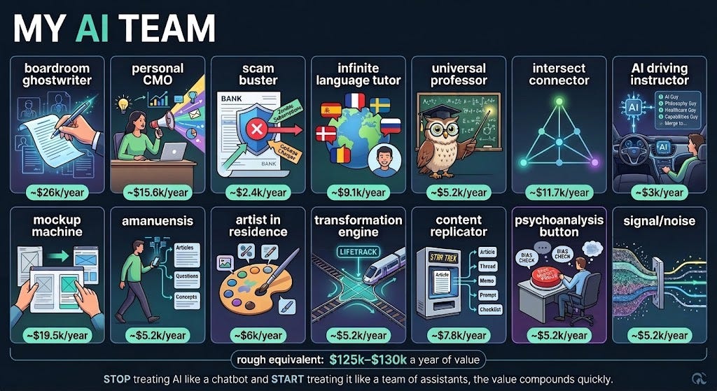 The point is that once you stop treating AI like a chatbot and start treating it like a team of assistants, the value compounds quickly.